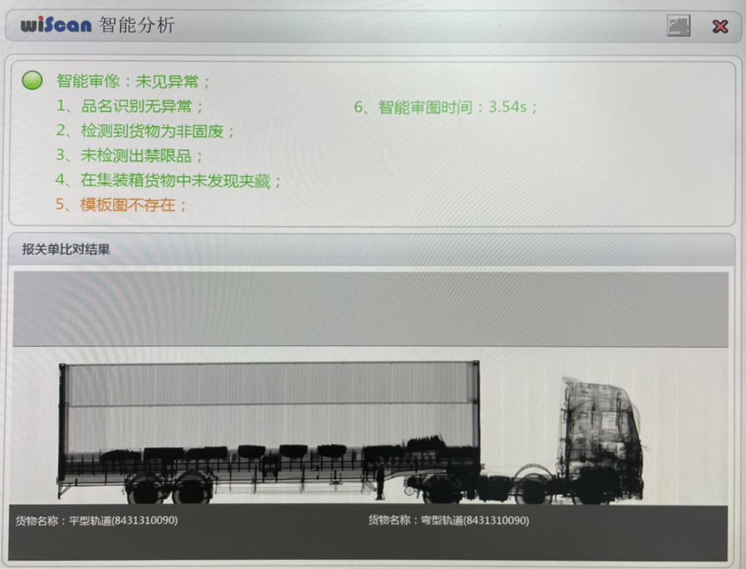 当然机检查验也并不是没有不足之处,当集装箱内货物种类比较多或者不能直观的从图像判定货物品名时,就需要人工查验进行现场核实。两种方式相互配合,才能更好更快的完成货物通关工作。